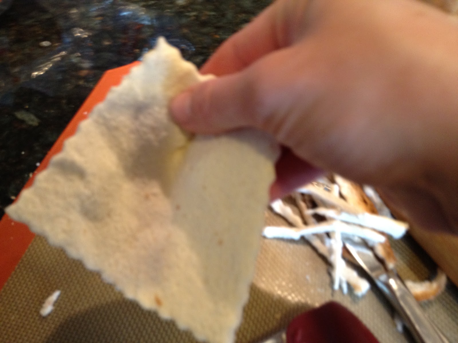 Once your bread is flattened you want to cut all of the crust off.