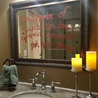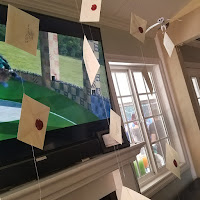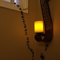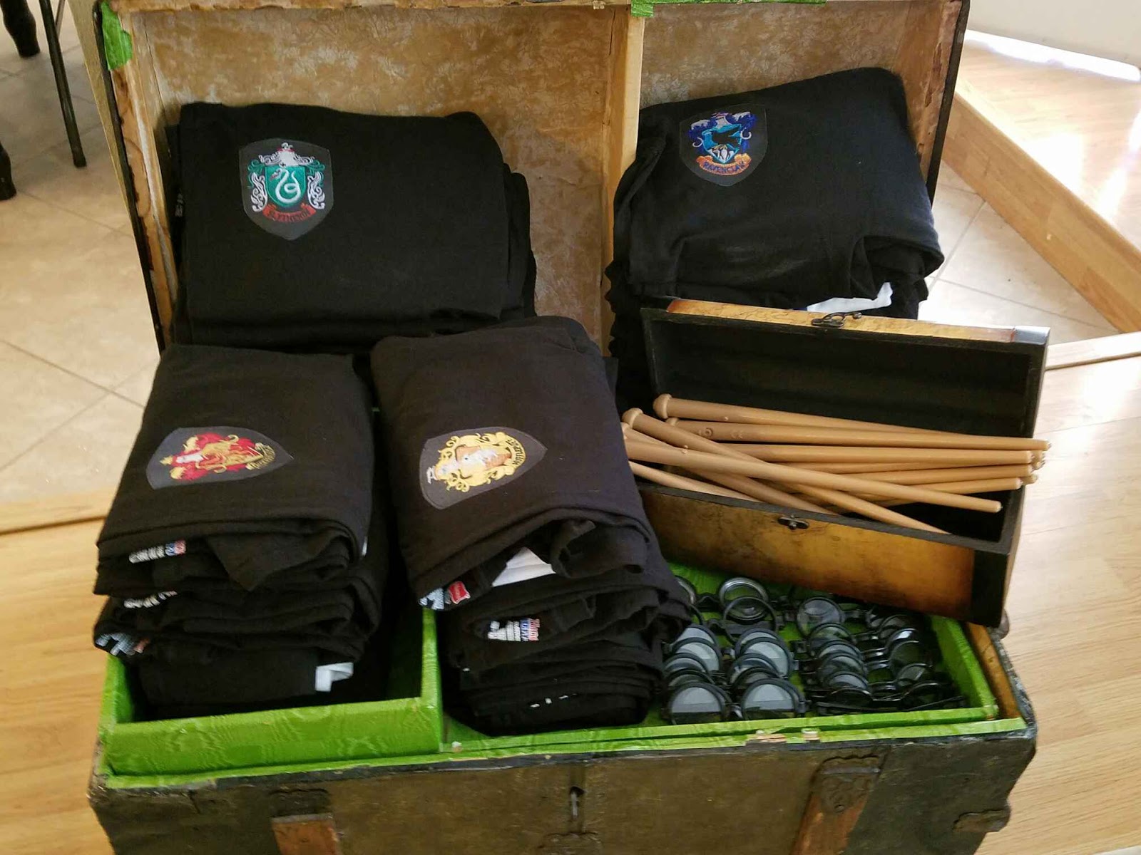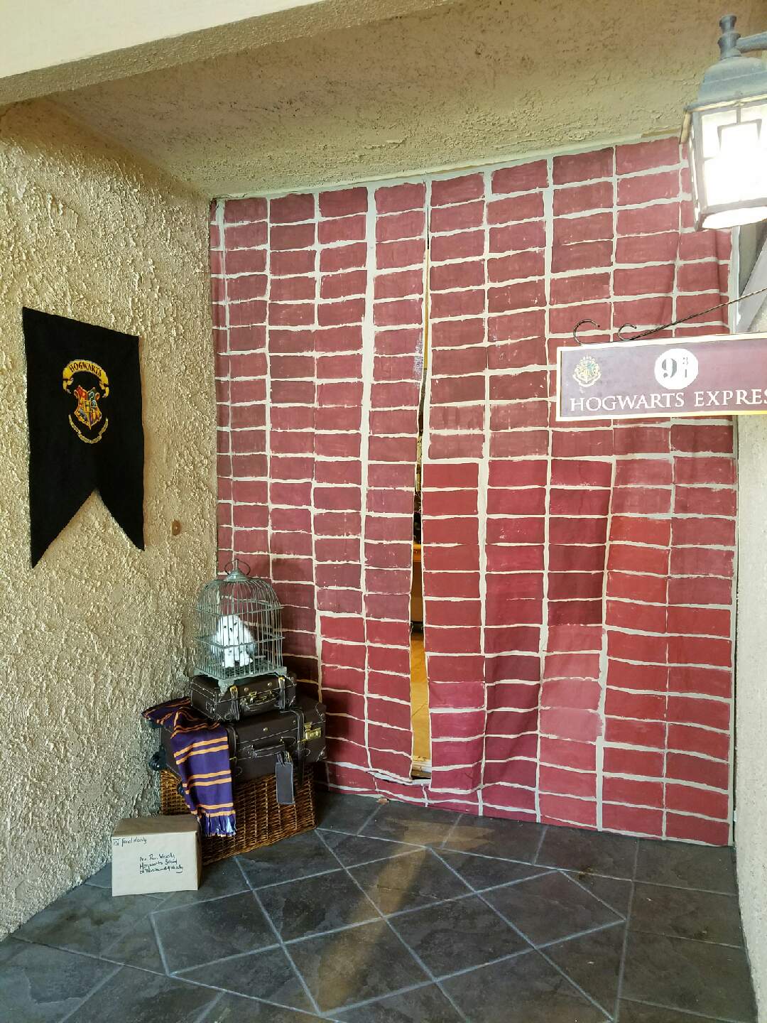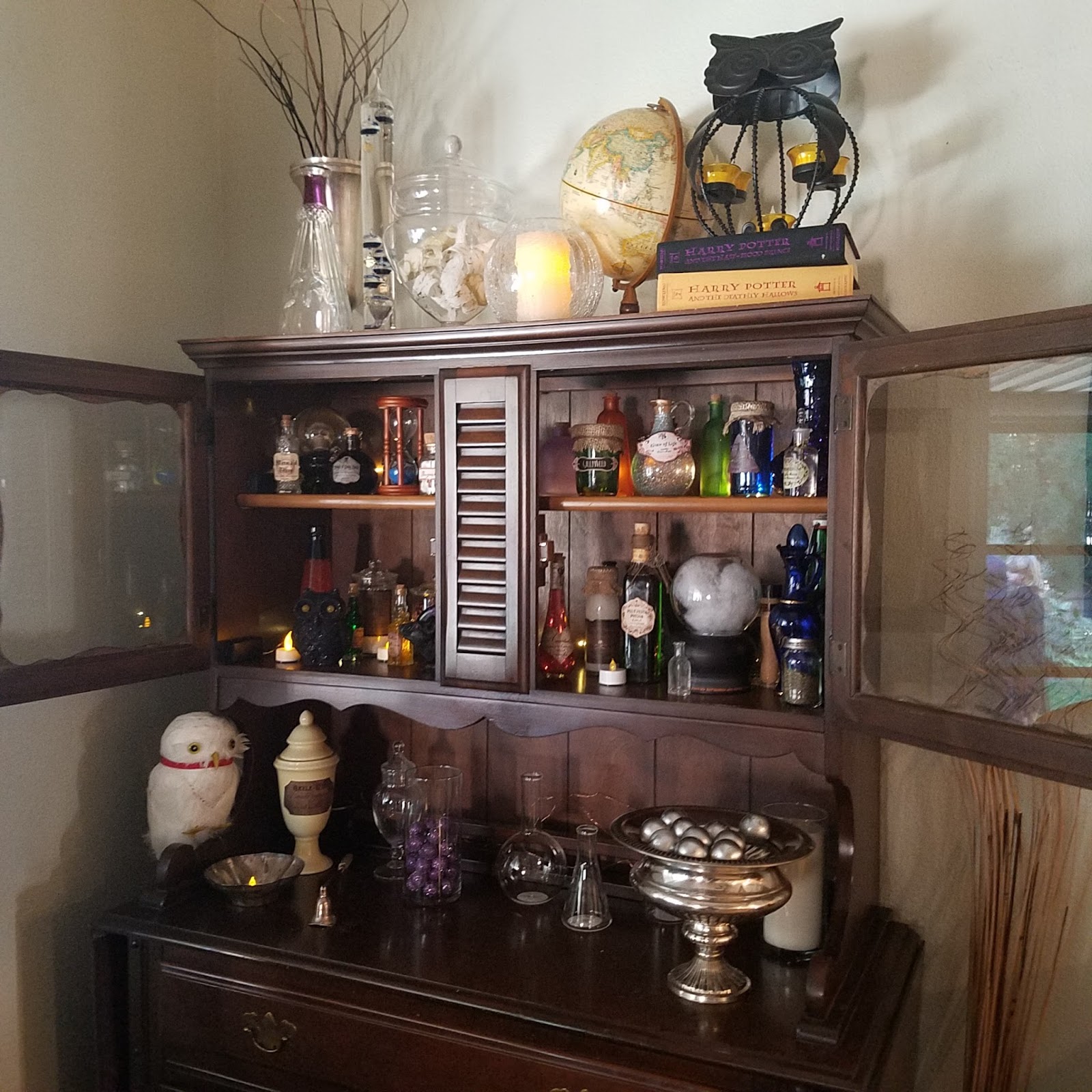 Our living room was set up with portraits of famous wizards, a potions cabinet with a pensive and some other items you may find in the wizarding world. We used battery powered faux candles everywhere since we had 23 nine year old boys.